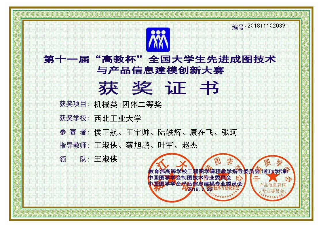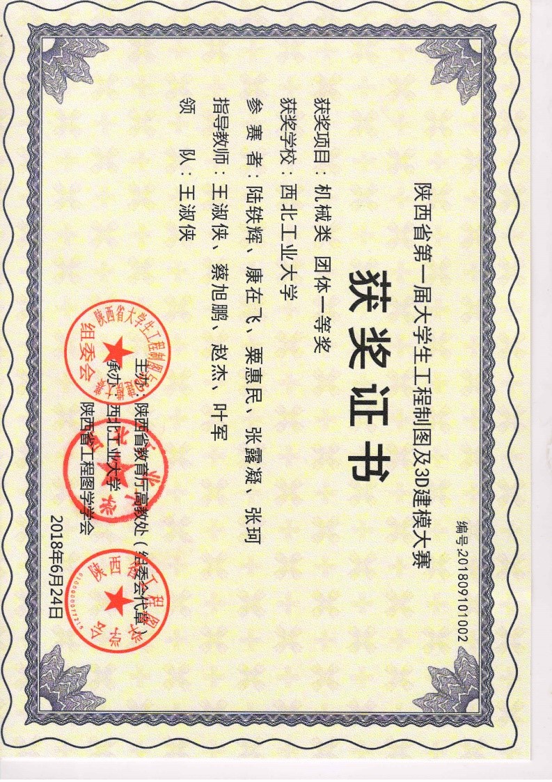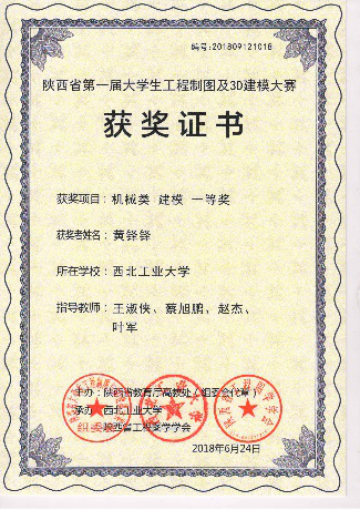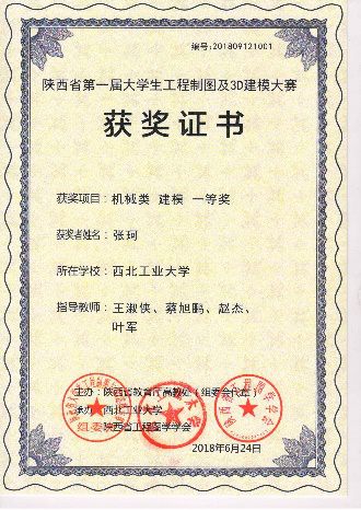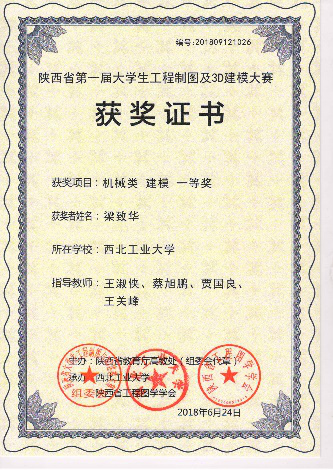 协会于2018年参加了第一届陕西省大学生工程制图及3D建模创新大赛,获得团体一等奖, 个人一等奖11项,个人二等奖17项,个人三等奖4项,优秀组织奖1项,共计奖项34项。