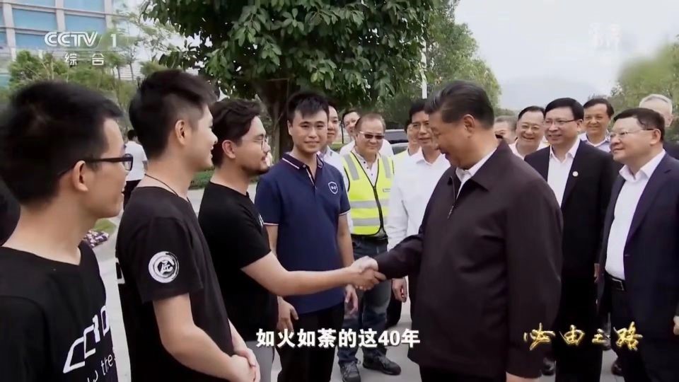 协会第一届会长何伟学长(左一)创立了自己的科技公司。曾在央视纪录片《必由之路》中出镜,总书记与他亲切握手。