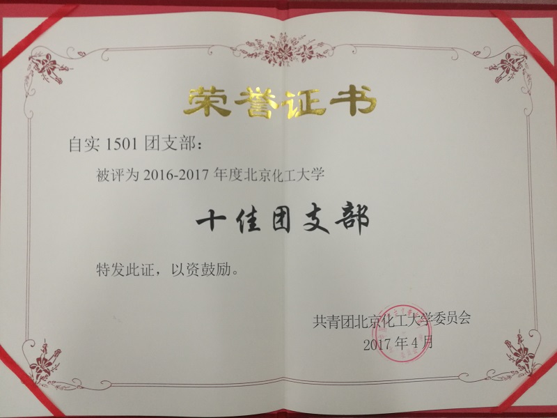 北京化工大学信息科学与技术学院自动化专业大三年级自实1501班团支部