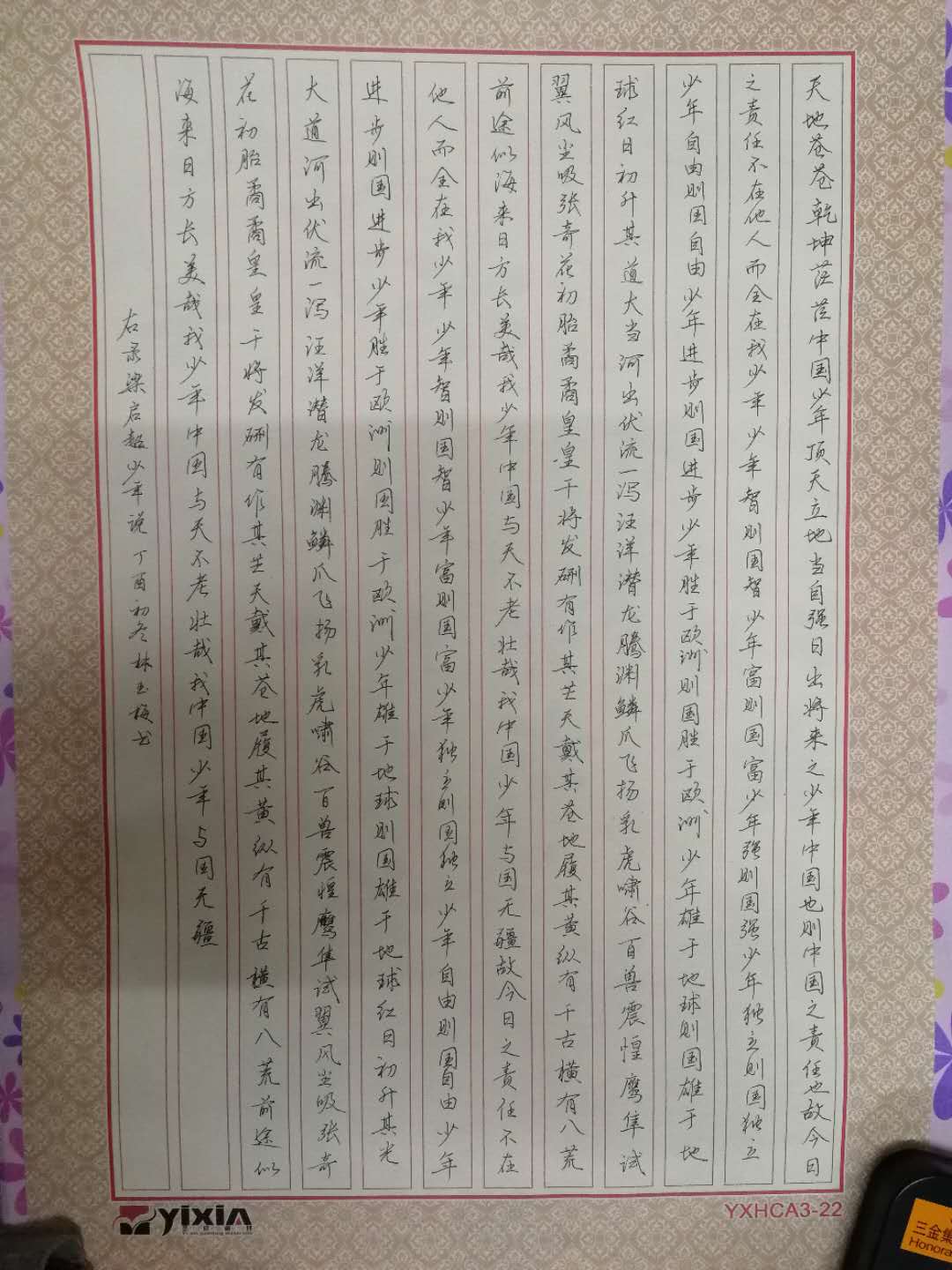 在活动结束之际,本支部全体同学一起朗诵了梁启超先生的《中国少年说》,林玉梅同学积极为集体书写了书法作品《中国少年说》。团支书为此活动做了总结。