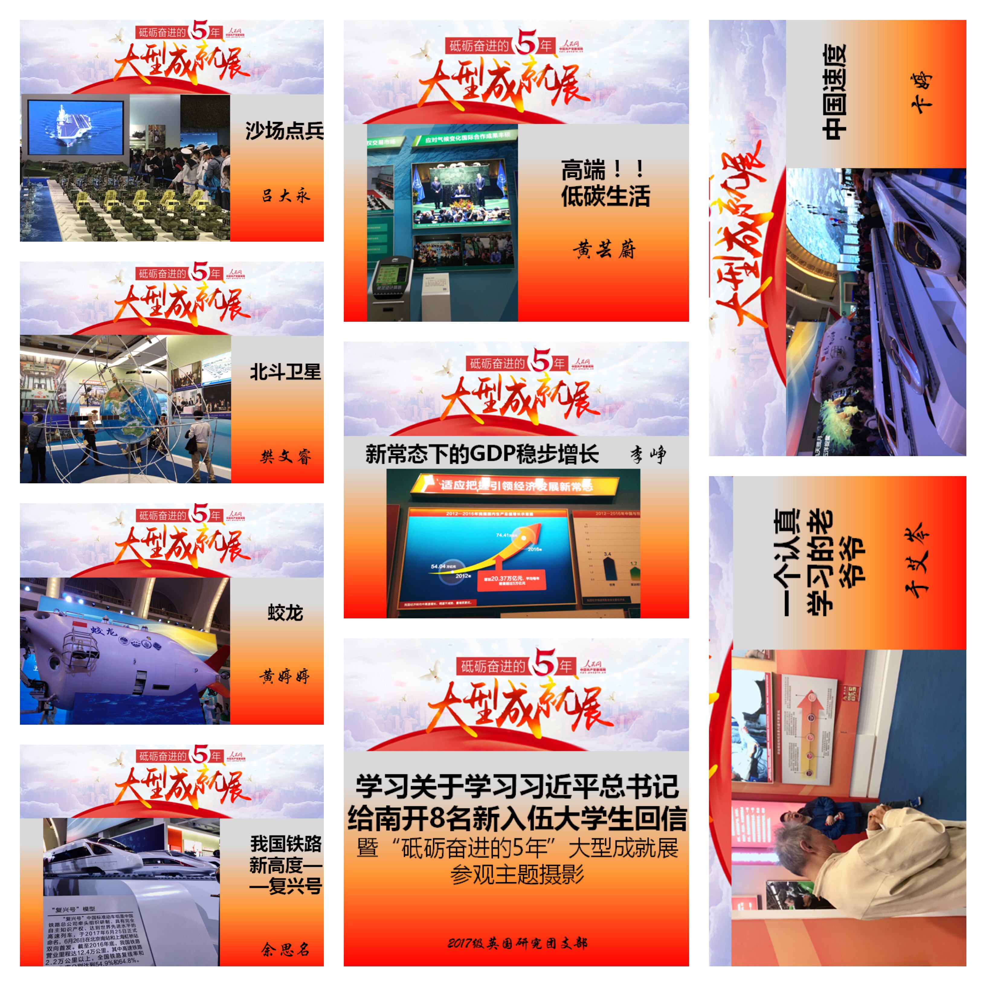 第二期以“喜迎党的十九大,不忘初心跟党走”为重点,加强“党建带团建”的意识,用丰富多彩的活动形式增强团支部活力。10月11日—13日,17英研团支部开展“心怀爱国报国情,践行青春中国梦”的学习教育团日活动。通过学习习近平总书记给南开大学8名新入伍大学生回信精神,团员们深刻感受到了以习近平同志为核心的党中央对青年成长成才的亲切关怀,深化了对爱国等核心价值的理解。通过参观“砥砺奋进的五年”大型成就展及主题摄影活动,团员们认真回顾了五年来我国在各个领域的成就,全面感受我国发生的历史性变革。通过团支部内“喜迎党的十九大”线上知识竞赛,团员们巩固理论,积极推动“两学一做”学习教育常态化制度化,以优异的成绩迎接党的十九大胜利召开。10月18日,组织观看十九大开幕式团日活动,并派团员代表出席学院组织的观看党的十九大开幕会直播活动。
