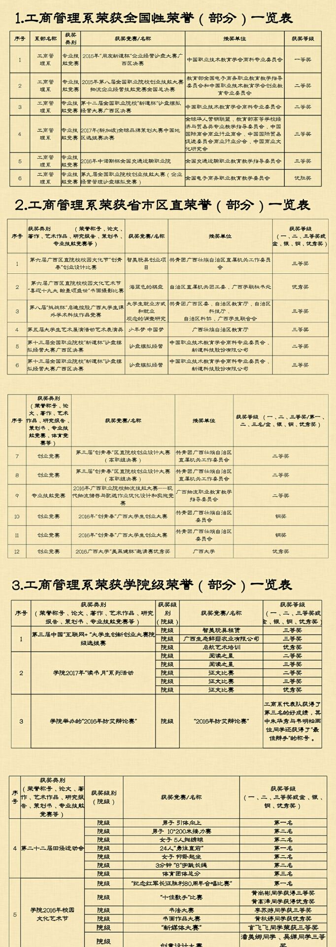 多年以来,该团总支带领全系青年学生在全国、全区、市级和校级各类专业技能比赛、文化艺术比赛、体育竞技比赛中取得累累硕果,在2016-2017学年度在各级各类比赛中获奖同样获得了骄人成绩(具体获奖情况见附件)。