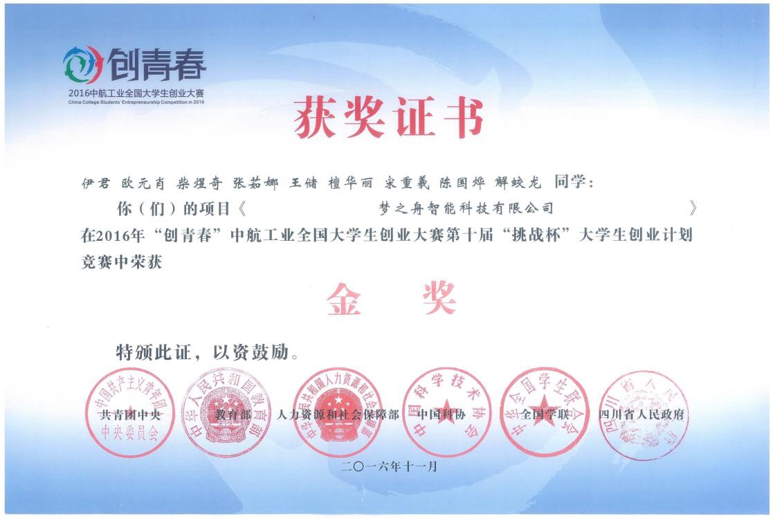 图3.团支部成员荣获全国“创青春”大学生创业计划竞赛金奖