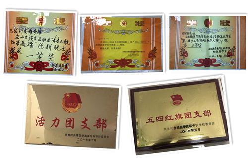 2015-2016年临床医学系“青春启航,临梦飞扬”迎新晚会一等奖;校“手工艺现场制作”大赛三等奖;校“迎新杯篮球赛”优秀奖;2016-2017年“弘扬五四精神,突出青春梦想”黑板报评比二等奖;“临床飞扬达人梦想”晚会二等奖。