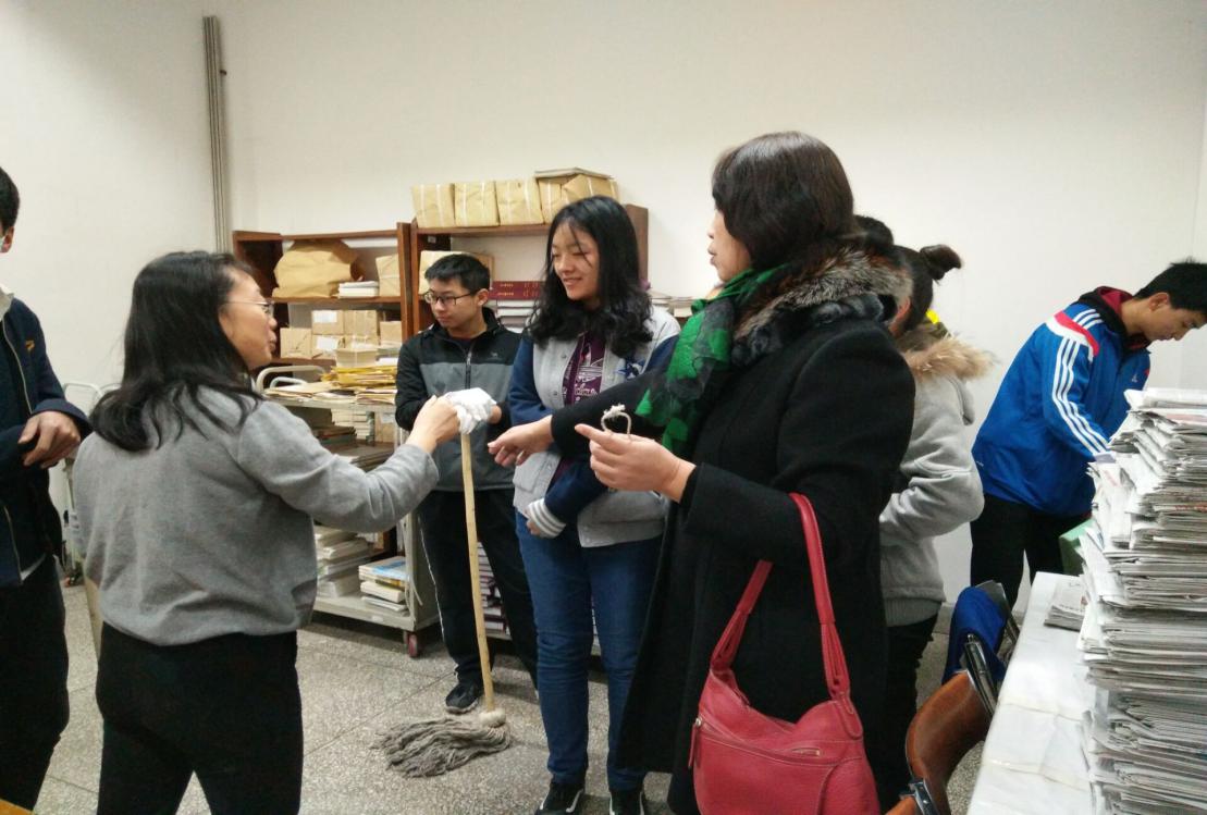2、2017年3月13日“弘扬雷锋精神,引领价值风尚”团日活动:义务整理校本部藏书,擦拭书架;
