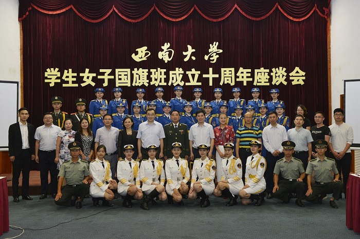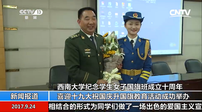 西南大学学生女子国旗班团支部是由校党委直接领导,以“爱国主义教育”为主要内容,以“团结、进取、奉献、爱国”为班级精神,以“增强广大学生爱国意识、爱国情感”为主要任务,以“升旗、降旗、爱旗、护旗”为主要责任的荣誉班集体,更由此延伸和扩容为一个从形式到内容都对学生以及周边群众具有强烈吸引力和深刻教育作用、受益广、可以长期活动且效果显著的学生爱国主义教育项目。