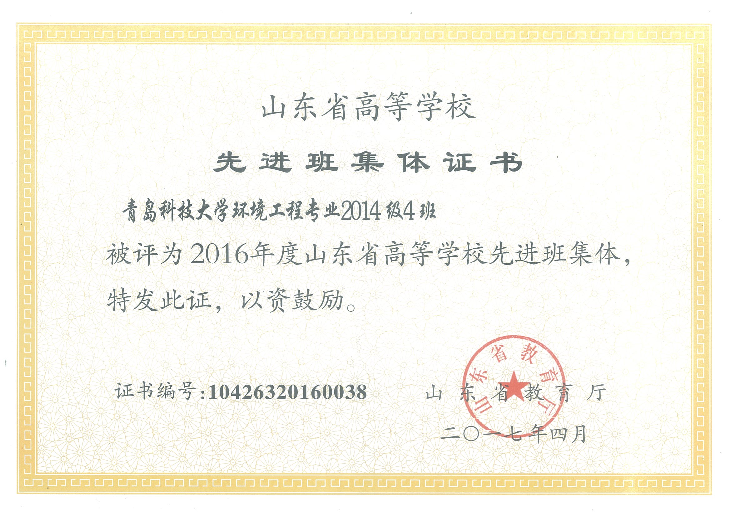 曾获得山东省高等学校先进班集体、青岛科技大学先进班集体、青岛科技大学五四红旗团支部等荣誉称号的青科大环工144团支部是一支组织建设完备、学习成绩突出、活动丰富多彩的高凝聚力队伍。