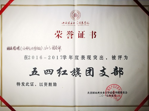 2016-2017学年,团支部荣获“五四红旗团支部”、“优秀班集体”、“完满班级”、首批“雷锋团支部”等荣誉称号。支部成员荣获国家级、省级、校级荣誉累计140人次,涌现出一批优秀学生,并在广大同学中树立了典型和个人品牌,形成了品牌效应,在青年团员中产生了广泛和持续的影响力。