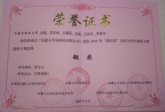 三、科技创新:科技中国梦,舞动少年心。团支部同学组成的两支科技创新团队均获得自治区级、校级等不同奖项。草花科技有限公司在“挑战杯”大学生创新创业大赛中获得自治区级铜奖。