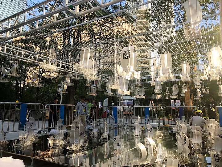 自灯光节开幕以来,作品展位前人头攒动,我们的作品受到了不少广州市民的由衷喜爱。在展出期间,成员们轮流值班,担当起义务讲解员,耐心向市民介绍我们的创作理念和过程,把我们心中的美好希冀传递给每一个人,让更多的人了解“扬帆起航”背后所蕴藏的强大理想信念。