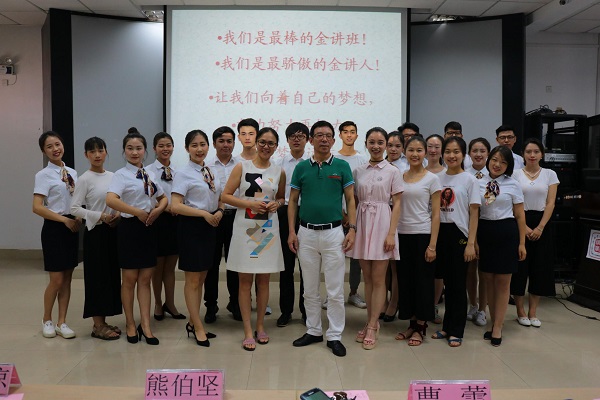在原省委常委、秘书长朱虹同志的关心支持下,江西科技师范大学金牌讲解班应运而生。作为2015级金牌讲解班活力团支部,我们倍感荣幸的同时深感身上肩负的神圣责任和重大使命。一直以来,我班团支部始终秉承“精湛的才艺、优雅的气质、深厚的底蕴、娴熟的技能、俊美的形象”五个维度的教学要求,以团学活动为载体,一二课堂高度融合,不断拓展金牌讲解班的外延和内涵建设,提升每个学生服务地方旅游经济的能力,切实发挥好班级同学在业界的“金名片”效应。