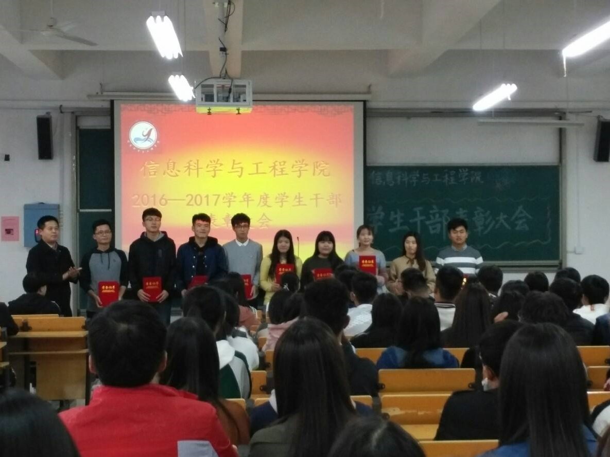 团支部是校团委领导下的基础共青团员组织,该部积极相应校团委号召,认真执行信息科学与工程学院团支部交给的任务。该班共33学生,29名共青团员,4名中共预备党员,认真学习党的知识,积极向党组织靠拢,不断加强团章、党章、优秀党员光荣事迹等的宣传力度,支部团员思想得到了进一步提升,在2017年取得“优秀团支部”称号。