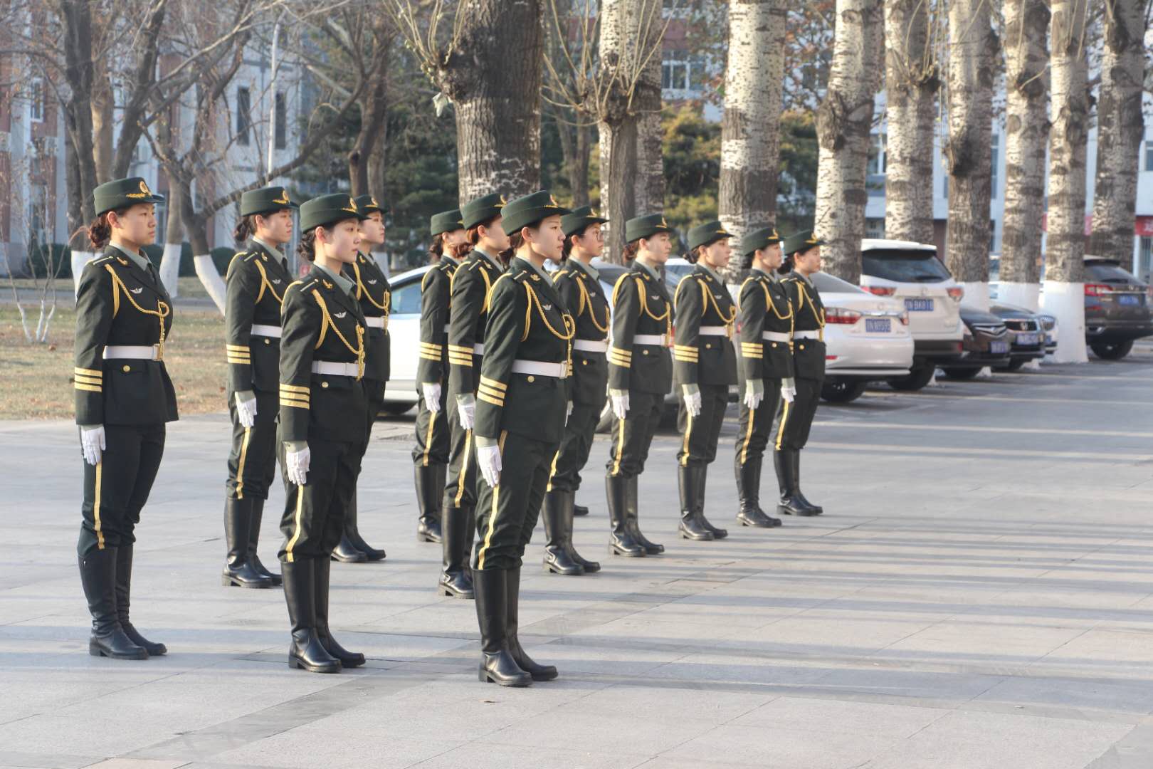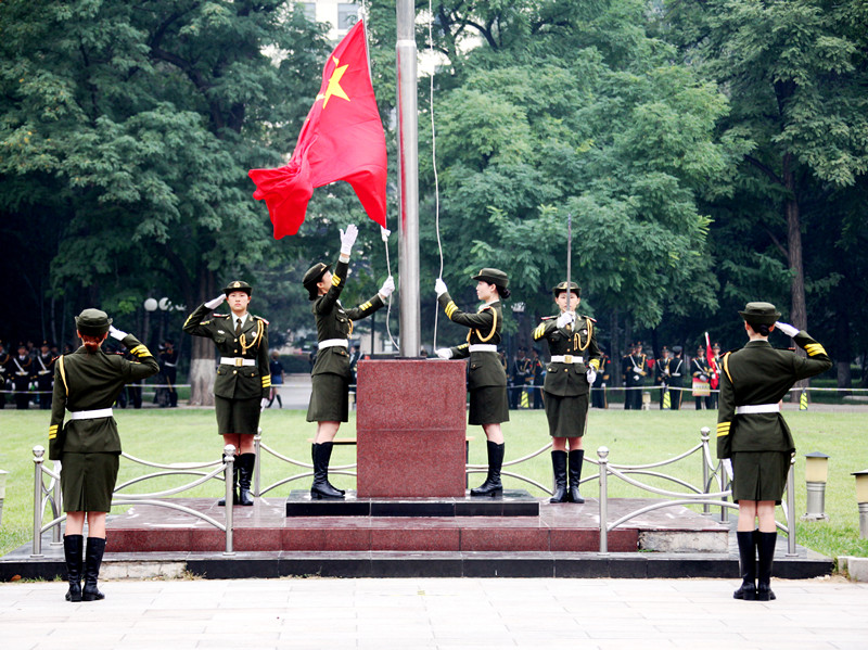 在女子国旗班创建伊始,学校就把建设成为护卫国旗的先锋队作为唯一宗旨。二十年来,我校女子国旗班严于律己,作风优良,在思想上和行动上不断强化,树立爱国主义精神,从而带动更多学生践行爱国精神,中华儿女多奇志,不爱红装爱武装。如果说我校女子国旗班是北农一道亮丽的风景线,那么我校荣誉室可谓是北农一处风景。荣誉室里高高陈列的不是一个个冰冷的奖杯,而是挥洒青春与汗水的结晶,桌面上整齐摆放的也不仅仅是一套又一套夏装,而是国旗班每一位队员矢志不渝的信仰!