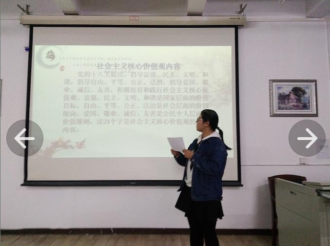 一、思想引领成效好 1、理论学习,加强政治修养。在思想建设上,该团支部始终坚持社会主义核心价值观,一直将提高团员青年的思想道德素质,加强政治修养作为支部工作的重中之重。 2、结合专业,提高实践成效。例如中英双语主持,社会主义爱国英文诗朗诵、英文歌曲展示、英文辩论赛等多种节目,让活动更具活力,更有特点。