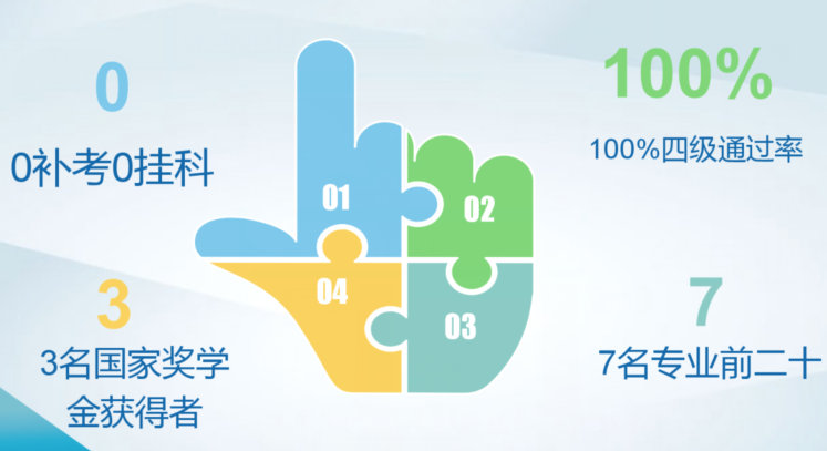 思想引领带动学习建设。1604005团支部成绩优异,各项指标领跑全院。目前保持着零补考零挂科的战绩,四级通过率100%,非英才同学平均学分绩86.61,有七名同学跻身专业前二十,短短一年内,班级同学获评人民奖学金总计8500元,国家特殊奖学金29000元,各类特殊奖学金11000元,其中三人获评国家奖学金,总计48500元,累计获奖22人次,占班级总人数一半以上,以绝对优势居航院首位。