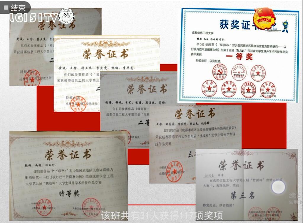 该支部通过灵活多样的形式,间周举办一次团组织生活会,至今共26次团学活动,7次班聚活动,4次专业实习。2017年与成都市龙泉街道广场社区合作开展全国大学生“三下乡”志愿服务,推进美丽中国实践。至今共获“优良学风班”、“红旗团支部”等5项集体荣誉,5人获得国家励志奖学金,32人获得校级奖学金,专业学术期刊中稿率100%,文明寝室率100%。此外共31人获得多达117项奖项,代表如国家级大学生创新创业训练计划立项、四川省“挑战杯”省赛一等奖、四川省“大学生创新、创意及创业”省赛一等奖、成都市“雅正杯”导游服务技能大赛二等奖等。