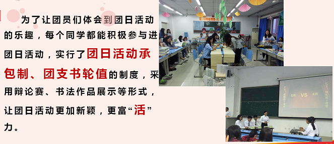 定期组织团员进行思想汇报和开展民主生活会。提高团员思想觉悟的同时,积极探讨班级现状,商议解决方案和步骤,为班级各项工作有序高质的进行奠定了良好基础。在此基础上,通过并实施了团委干部值班制度和团支书轮流制度、团日活动承包责任制度等管理机制,集思广益开展团日活动,既给团日活动的开展提供了源源不绝的思想动力,又增添了团员们的归宿感和责任感,让团日活动彻底“活”出来。