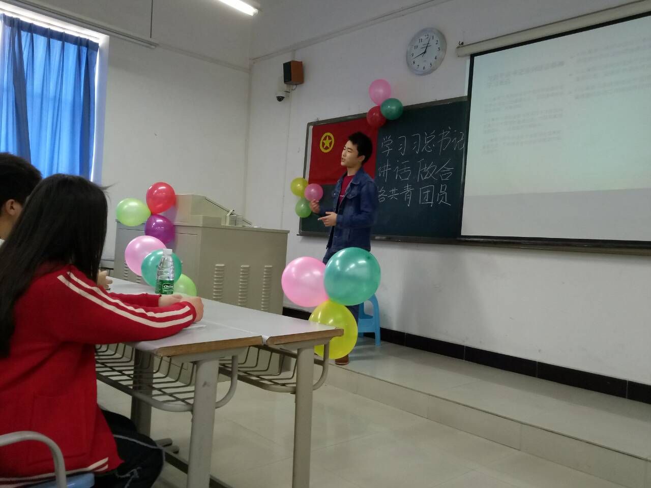 定期召开班团干部会议,学院各项活动参与率100%。迄今为止,共举办以“筑梦青春,共话改革”“倡导六讲五不,践行社会主义核心价值观”“左手青春,右手梦想”“不忘初心,高举旗帜跟党走”“学习习总书记讲话,做合格共青团员”“学习十九大精神”为主题,且形式多样的团组织生活。其中团支书童丽在“背靠背”团支书测评中满意度达100%,在2016—2017学年被授予最美团支部书记称号,并在团支部书记岗位实践能力大比武获优秀奖。