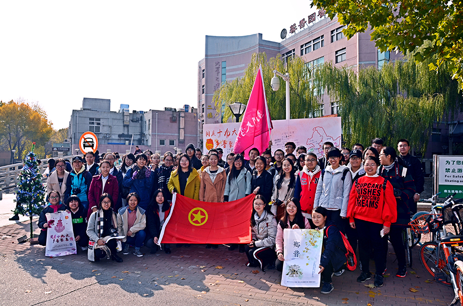 我团支部同学积极上进,团结有爱,具有极强的集体意识,整个团支部氛围活泼向上,在团支委的带领下,出色完成了许多有意义的活动。今年11月5日上午在南开大学八里台校区举办了"同庆十九大,乡音聚亲情"的主题团日活动,以签家乡展板、传递许愿树上的漂流瓶、寄明信片、采访拍摄等形式,宣扬了十九大精神,又凝聚了同乡人的亲情。活动过程中不断有路人自愿参与进来,规模不断扩大,社会参与广泛。活动共收集了108张明信片,经筛选,共寄出91张有效明信片到家乡各地亲人们的手中。最终,活动视频产生良好反响,同学们都表示收获颇多,同时活动也被凤凰新闻和一点资讯特别报道。