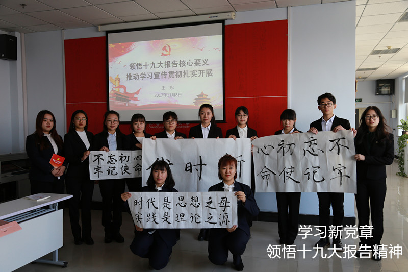 在思想建设方面,团支部定期邀请校外思想理论研究者进行思想理论大讲堂、成长沙龙、理论实训等活动,使同学们对马克思主义中国化的理论成果及时事政治有了更加深刻的理解。除此之外,团支部还积极主动地组织同学学习党的重大方针政策,把握时代脉搏,例如共同学习十九大精神、自发学习新党章等活动。这些学习提高了同学们的马克思主义修养,坚定了同学们的政治信仰,使同学们更加明确了青年的责任。