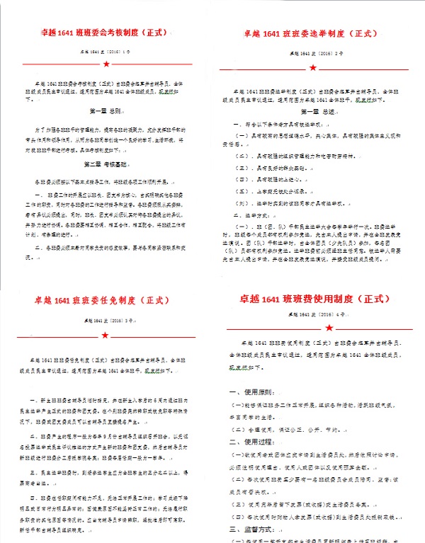 上海政法学院法律学院卓越法律人才试点班1641团支部自成立以来,始终秉承“卓越”与“活力”共存的支部建设理念,以打造“四有”活力团支部为目标,结合卓越法律人才试点班专业特色和培养目标进行团支部建设。坚持“不忘初心”,践行核心价值观与学习十九大精神活动,打造“有思想”的活力团支部;追求“卓法不群”,以模拟法庭等学术项目为平台,打造“有深度”的活力团支部;实现“章法促团”,以三会两制一课与支部特色活力考评制度为保障,打造“有组织”的活力团支部;培养“领袖气质”,以卓越人才培养计划与团体活动为依托,打造“有温度”的活力团支部,在活力提升中彰显卓越,在制度建设中巩固卓越。