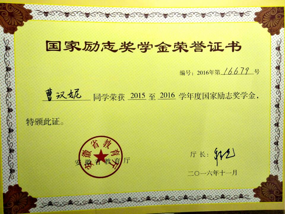 勤学奋进篇:15商英本二班始终保持着“学海无涯,奋楫者先”的学习态度。团支部成员分成若干学习小组,小组间即互相竞争又互相帮助,在学习上取得优异成绩。我团支部曹汉妮同学获得2016-2017学年国家奖学金;宁珊珊、王中梅同学获得2016-2017学年国家励志奖学金;陶卉等同学连续获得校级奖学金,累计获得奖学金共有10人共计13 人次。班级CET-4通过率为100%、CET-6通过率为65.5%。