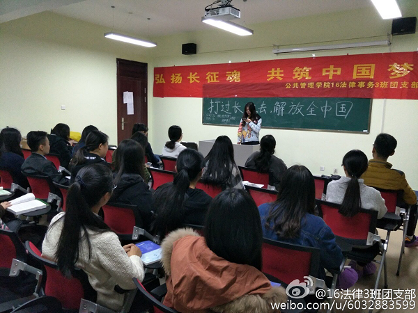 16法律3团支部是一个充满活力、团结友爱的集体。在院团委领导下,我们团结奋斗,扎实工作,争做中国共产党的优秀后备军,认真贯彻党的路线、方针、政策,积极向党组织靠拢。在大一学年里有82%的同学递交入党申请,参加2期党校培训,培育8名积极分子,以强劲势头向党支部注入年轻力量,蓬勃发展队伍。