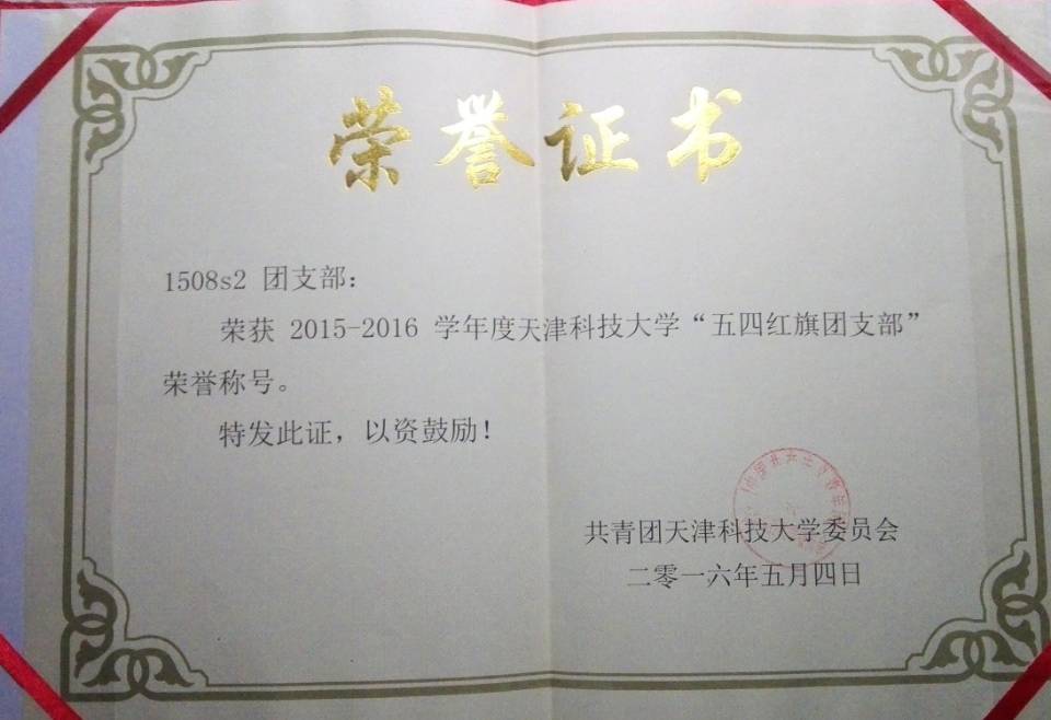 天津科技大学经济与管理学院工商管理类卓越人才实验班专业2015级1508s2班团支部