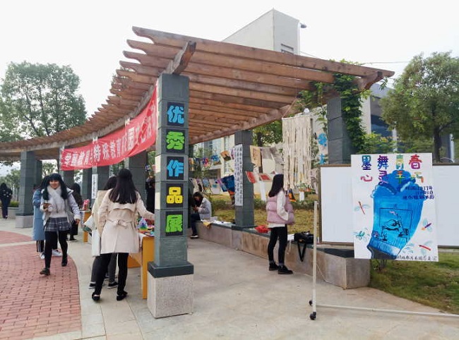 2017年11月28日下午,为丰富校园文化,我系团总支在我校楹联长廊举办“墨舞青春,心灵手巧”活动作品展。此次活动由共青团豫章师范学院委员会主办,学前教育与特殊教育系团总支承办,作品展活动面向全校师生。