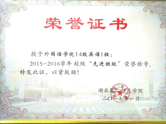 湖北第二师范学院外国语学院英语专业14级本科1班团支部