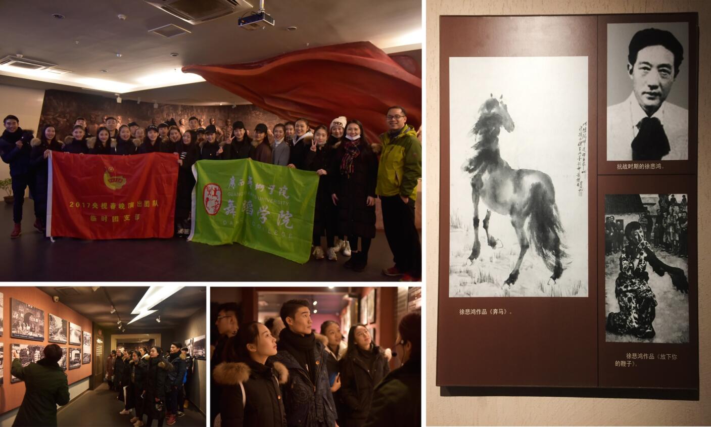向春晚出发:广西艺术学院舞蹈学院2017年央视春晚演出团队顺利出发 http://mp.weixin.qq.com/s/LnBibGxoW2WH3p69M_Pdsw 磨砺意志,备战春晚——我院师生圆满完成央视春晚第一次带妆彩排 http://mp.weixin.qq.com/s/iOwh1enUzMUoZpi9AApcqw 漓水滔滔,汇聚力量迎春晚——我院2017央视春晚演出团队临时团支部 赴八路军桂林办事处纪念馆开展爱国荣校主题教育实践 http://mp.weixin.qq.com/s/EkiDIkaK51MzIWsVNdnV3g 闻鸡起舞 闪亮春晚--舞蹈学院2017央视春晚演出团队向全校师生拜年 http://mp.weixin.qq.com/s/0D42FE3Lem-qTqc-mu_-qg