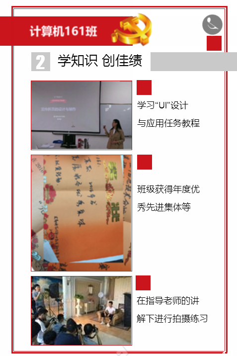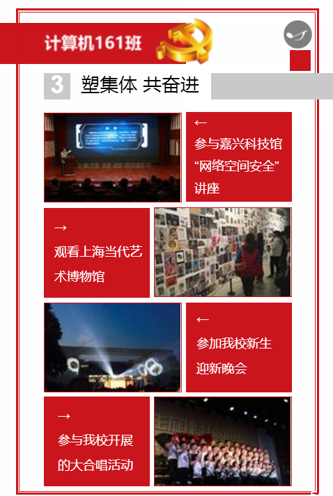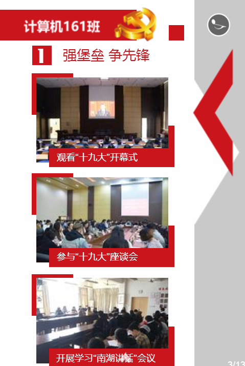 我们以党团思想教育为主线,以学习和应用科学文化知识为核心,在团内的自我发展过程中积极向党组织靠拢,积极参加党团组织的讲座和培训。在校内,我们严格遵守校纪校训,规范自身的言行,每周开展政治及思想教育主题班会,对身边以及社会上的事件展开主题教育和座谈。同时我们也会整理一些国家时事,紧跟党的步伐。