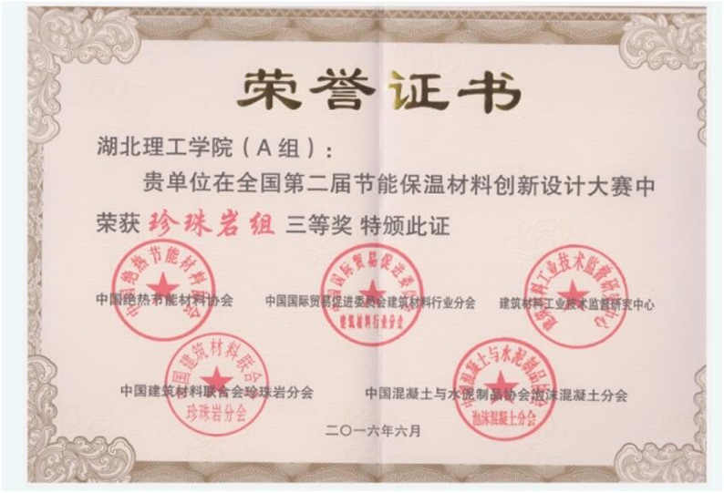 2016珍珠岩保温材料国家三等奖
