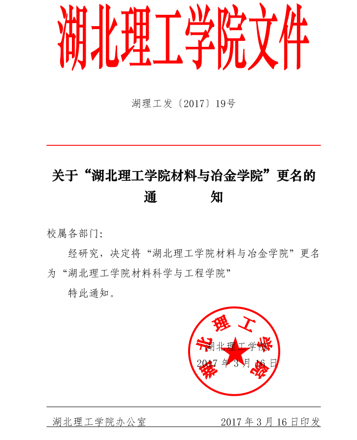 注:“湖北理工学院材料与冶金学院”于2017年3月16日更名为“湖北理工学院材料科学与工程学院”