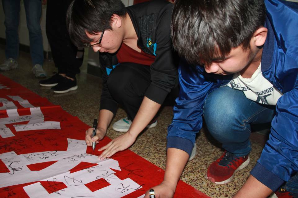 6.在团总支举行“拒绝烟草,从我做起”的活动中,我支部同学积极响应团委的号召,纷纷签下了自己的名字以表决心。