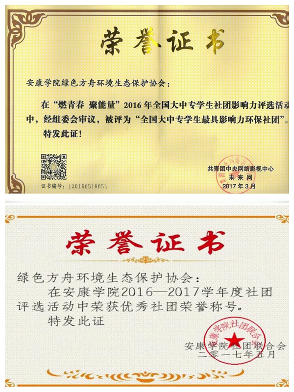 安康学院绿色方舟环境生态保护协会,全国大中专学生最具影响力环保社团,成立于2015年6月,自成立以来,协会积极响应国家建设“资源节约型、环境友好型”的号召,培养当代大学生心系祖国环保事业、以天下事为己任的使命感和责任感。在安康学院校团委和安康学院旅游与资源环境学院的领导和关怀下,协会在2016年12月成立了团支部,学院为协会配备了专门的指导老师,使协会活动更加专业化;同时,在协会团支部的组织带领下,协会健康蓬勃发展,活跃于整个校园、各大社区和相关环保企事业单位等,开展了垃圾回收、实践调研和宣传教育等形式新颖、内涵丰富的活动。