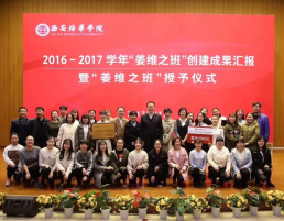 2016年11月在支部思想动员下参加我校创建“姜维之班”活动。此次创建活动中全体同学积极配合我支部策划方案。全校共165个支部申请创建,在2017年11月终期汇报中以第一名的优异成绩获得最高荣誉—“‘姜维之班’提名班”称号等。