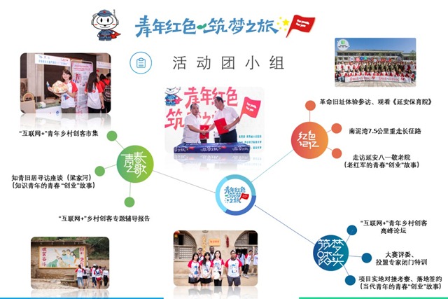 2017年4月和7月, 作为第三届中国“互联网+”大学生创新创业大赛的承办单位,西安电子科技大学依托大赛平台和陕西红色教育资源,组织开展了“青年红色筑梦之旅”实践活动。来自西安电子科技大学、清华大学、北京科技大学、厦门大学、南开大学等高校的百余支大赛项目团队分两批赴延安,通过大学生创新创业项目对接革命老区经济社会发展需求,助力精准扶贫脱贫。