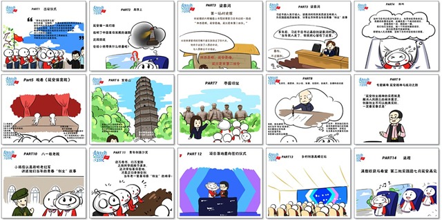 ★ 宣传团小组设计了本次活动 VIS 标识系统,创作了活动卡通形象代言人红军小将,推出了活动原创手绘漫画,制作了一批活动文创产品,拍摄了活动影像视频。中央电视台《新闻联播》、《人民日报》头版头条、《中国教育报》头版头条、《中国青年报》头版头条、《光明日报》头版头条、《经济日报》头版头条、《陕西日报》头版头条、陕西电视台《新闻联播》、《华商报》头版头条等全国百余家媒体均对本次活动进行了深入的采访报道。