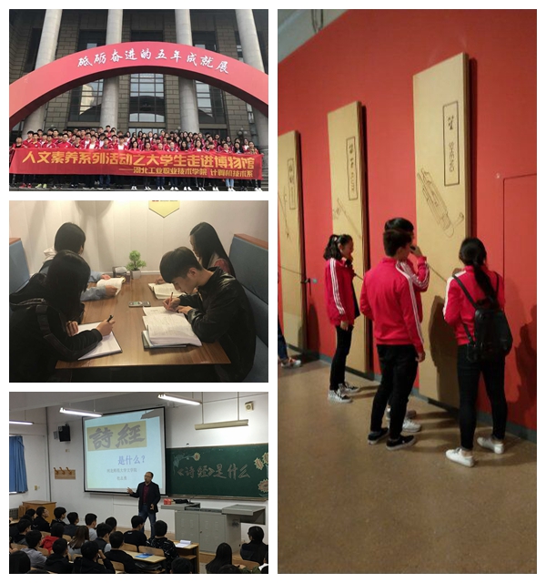 观乎人文•添青春之彩 作为一名大学生,不仅要注重专业知识的学习,同时也要在文化修养上有所提升,提高支部成员的文化素养,增强文化自觉意识与创新精神,为学生成长成才奠定更为宽厚的知识基础,我支部开展读书日活动,定期举办读书分享会,让同学们分享自己读到的一本好书,邀请文学、艺术的老师老对我们进行讲座,拓宽知识面,还组织支部成员走进博物馆,通过不同形式的活动来体会中华文化的博大精深和中华民族的伟大富强。这不仅丰富了支部成员的知识,同时也加强了爱国主义的熏陶。