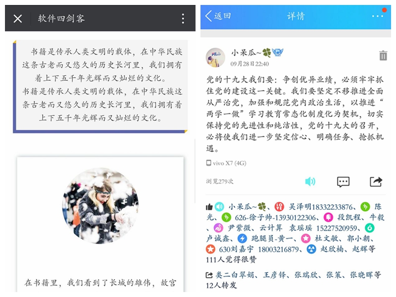搭建平台•传青年之声 我们通过自己的微信公众号和QQ空间,勇于在网上发声,传播网络正能量。无论是在重要的节日还是在喜迎十九大期间,我们都通过网络平台传递青年正能量,营造良好的氛围。