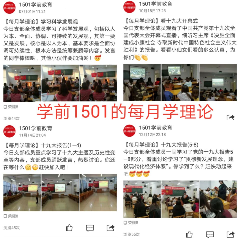将近一年的理论学习支部成员都提高了自身思想水平与认识能力,其中已有2名团员加入党组织,9名成员成为了入党积极分子。