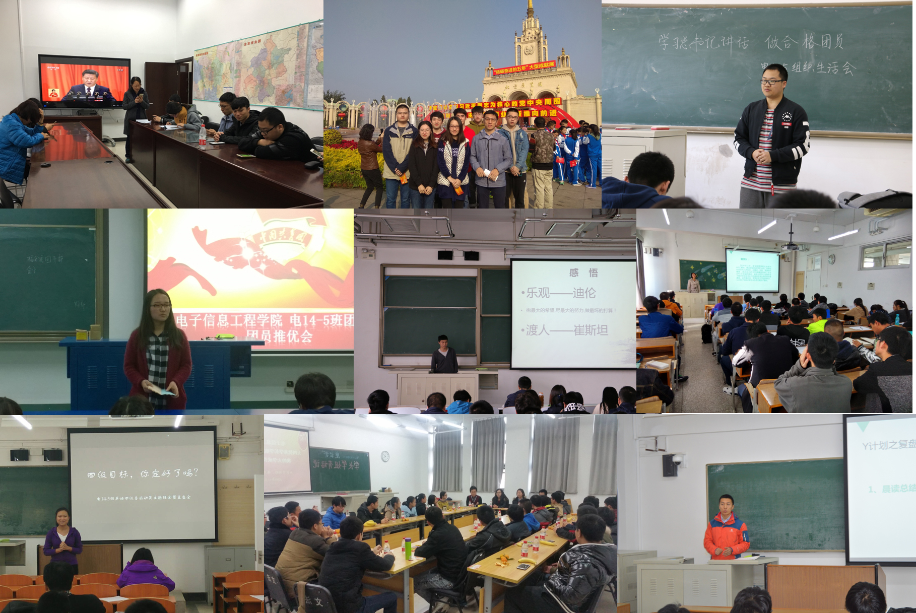 图1:支部组织的各种主题团日和主题班会活动照片