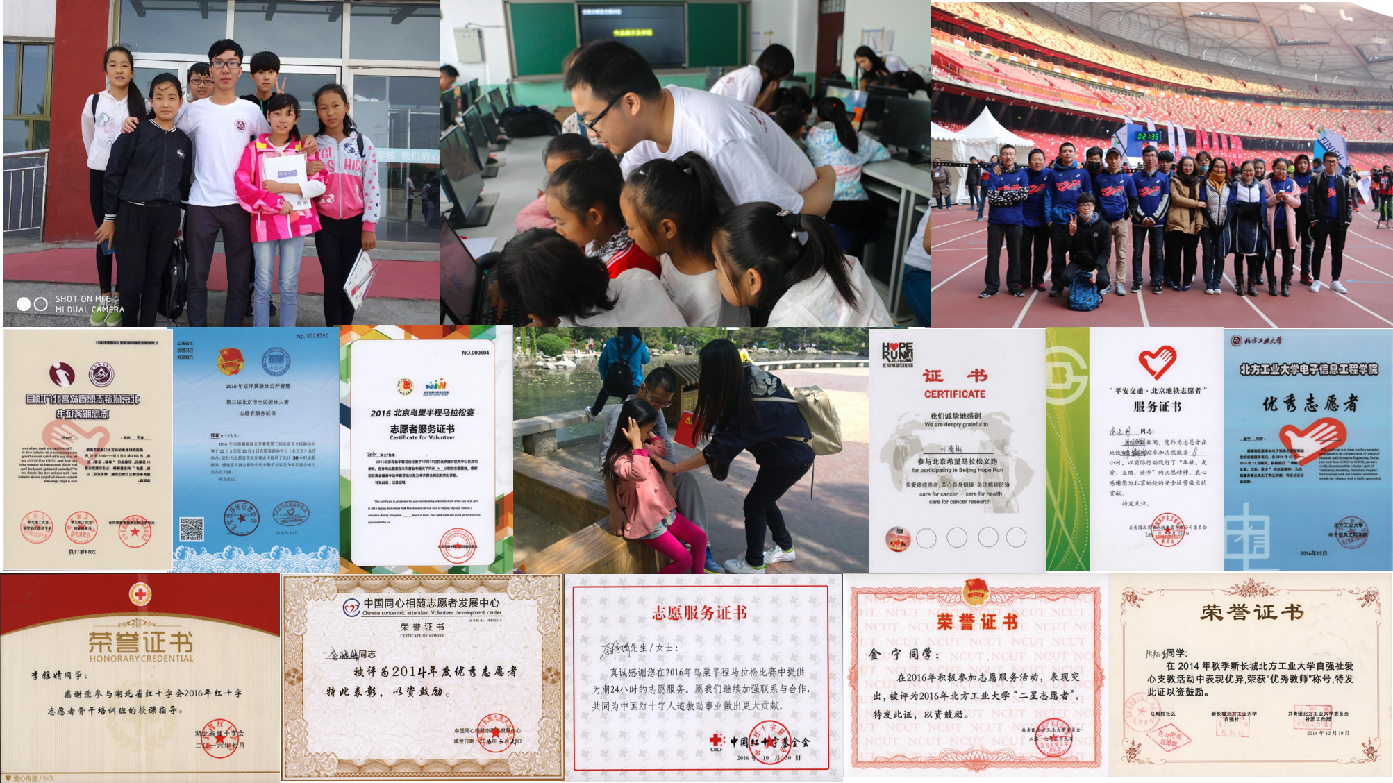 图2:支部同学参加各种志愿活动以及获得的各项荣誉证书 |