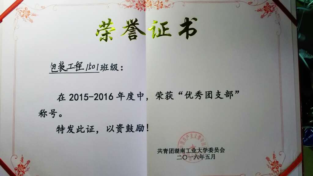 湖南工业大学包装与材料工程学院包装工程1501班团支部