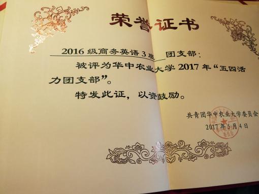 华中农业大学外国语学院商务英语1603班团支部
