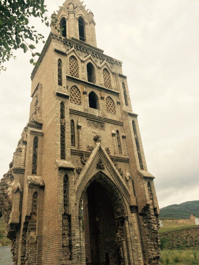 照片上是位于山西省左云县八台子村的大单巴教堂,这座哥特式的教堂相传已有100多年的历史,现今只剩下教堂尖尖的屋顶,雕梁画柱依稀可见,充满了异域风情。