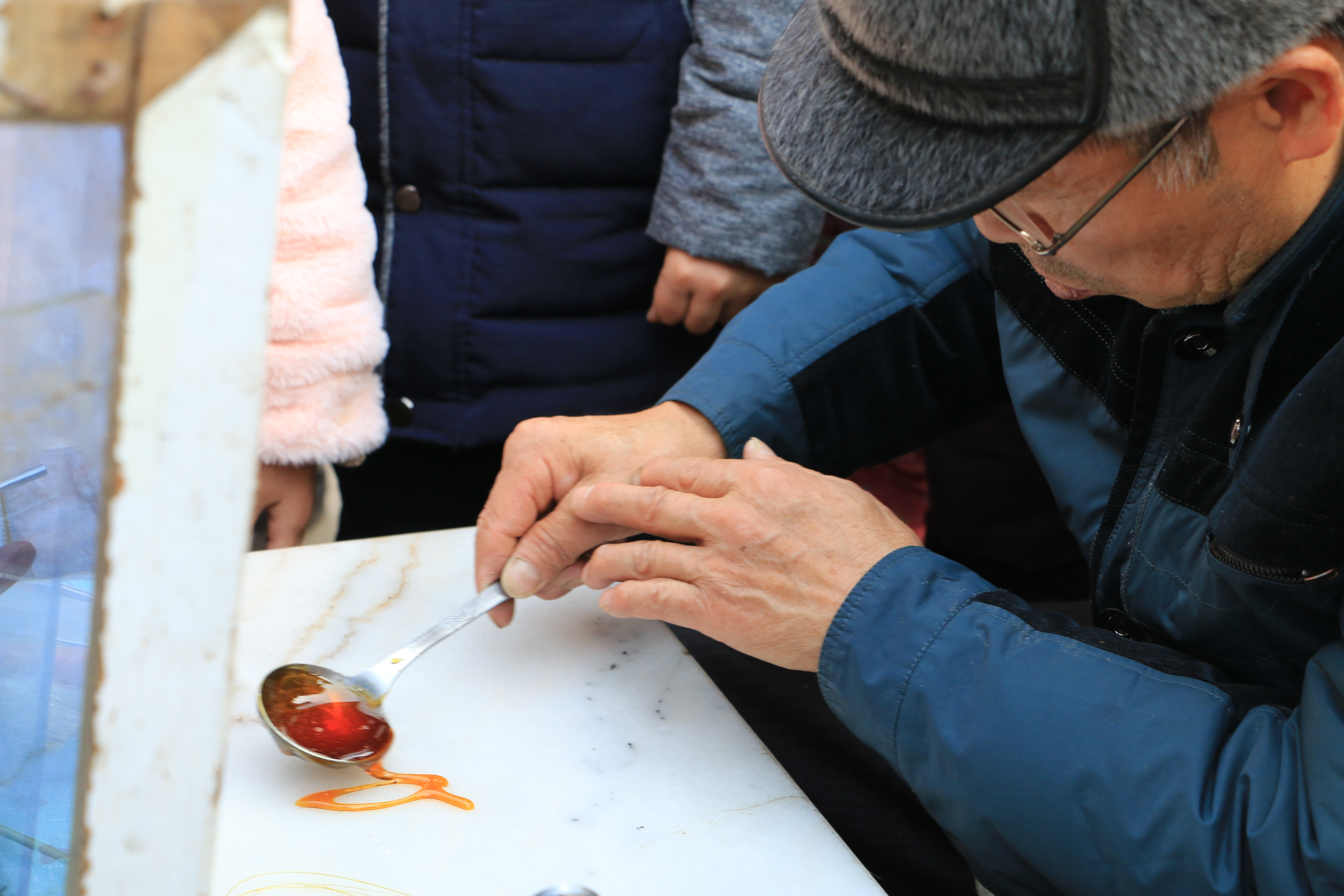 不知是越长大越感觉不到年味,还是因为社会导致传统流失,年味越淡。今年过年如往常般,不知年味在哪,便出门寻找年味。所幸走过了几条街,绕过几个商城,在破旧小街道看到了熟悉的身影。用画写名字,糖画,这俩个平日里几乎看不见的东西在过年这几天出现了,一瞬间回到小时候,仿佛看到那个为买一个小糖稀缠着父母半天的自己,那个时候经济没有那么发达,但快乐却比现在多很多。