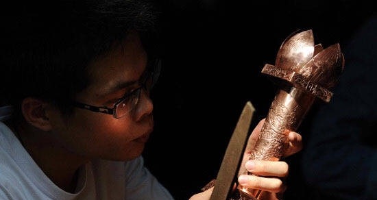 乌铜走银制作技艺属传统民间金属制作工艺,现仅存于红河哈尼族彝族自治州石屏县异龙镇冒合岳家湾村、坝心镇和昆明市晋宁县晋城镇。走银即镀银,乌铜走银即在铜胚上镂刻出精美的纹饰图样,然后在阴刻的纹饰内镀银或金,再将铜胚表面处理成黑色,使其在庄重深沉的黑底上衬托出银(金)光闪闪的灿烂饰纹,使工艺品显得雍容华贵,瑰丽多彩。其造型奇巧,制作工艺精湛,特色浓郁,不但具有很高的历史艺术价值和研究价值,也具有较大的商业开发价值。(云南大学新闻中心记者团宣)