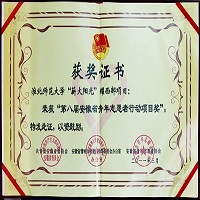 7、2011年3月,淮北师范大学“薪火阳光”耀西部项目,被共青团安徽省委、安徽省精神文明建设指导委员会办公室、安徽省青年志愿者协会授予“第八届安徽省青年志愿者行动项目奖”。
